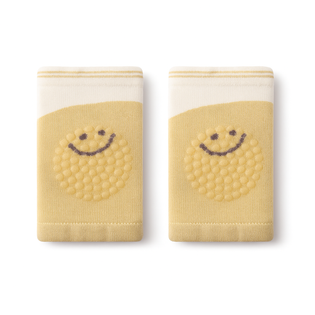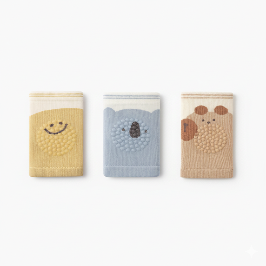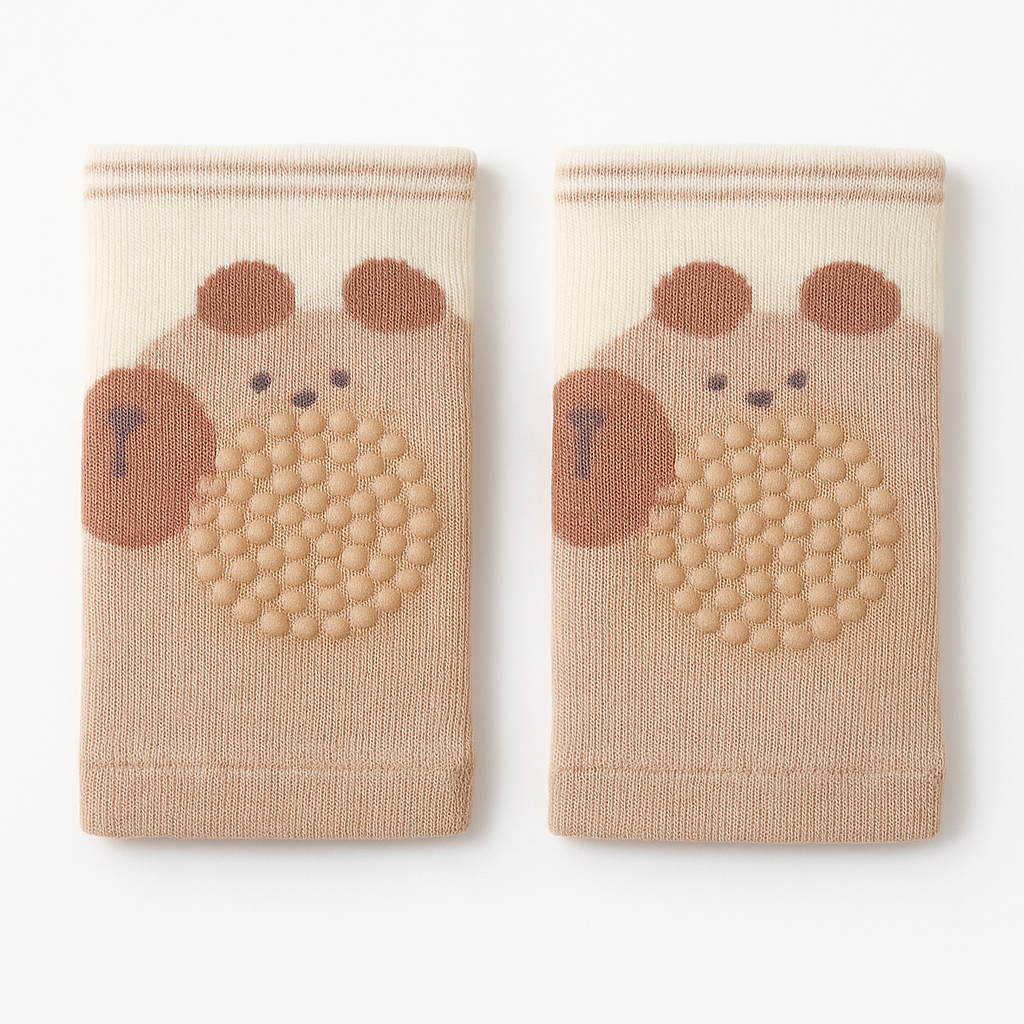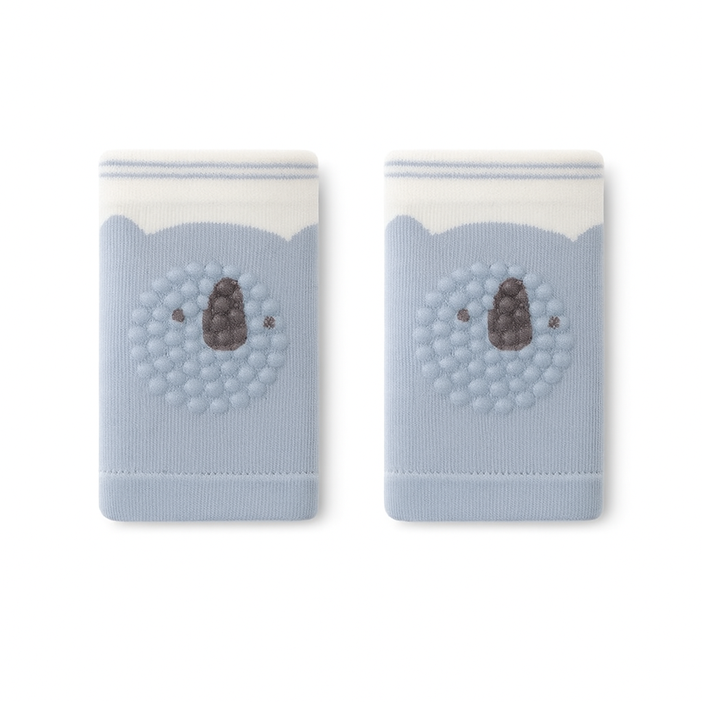 Mjuka och bekväma knäskydd som skyddar små barns knän vid lek och krypande. Knäskydden dras enkelt på och sitter stadigt utan spännen. Tillverkade i stickat tyg med halkfri undersida för extra säkerhet och finns i flera lekfulla motiv och färger.